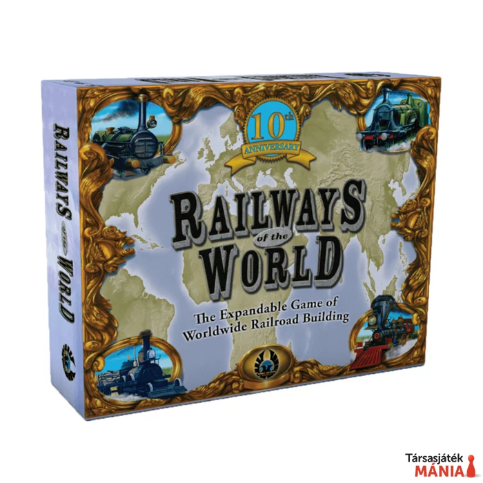 Szállj be a vadnyugat vasútépítési lázába a Railways of the World játékban! A játékosok 2-6 fős társaságban, nagyjából 120 perc alatt építhetnek saját vasúttársaságot, miközben bondokkal bővítik vagyonukat, gőzmozdonyaikat fejlesztik és városokat kötnek össze. A szabályrendszer összetettsége miatt 12 éves kortól ajánlott. A jubileumi kiadás átdolgozott térképeket, fejlesztett komponenseket, új szabálykönyvet és egyedi inzertet tartalmaz. Ideális választás, ha elmerülnél egy történelmi stratégiában, ahol a cél a legtöbb profitot hozó vasúti birodalom kiépítése.